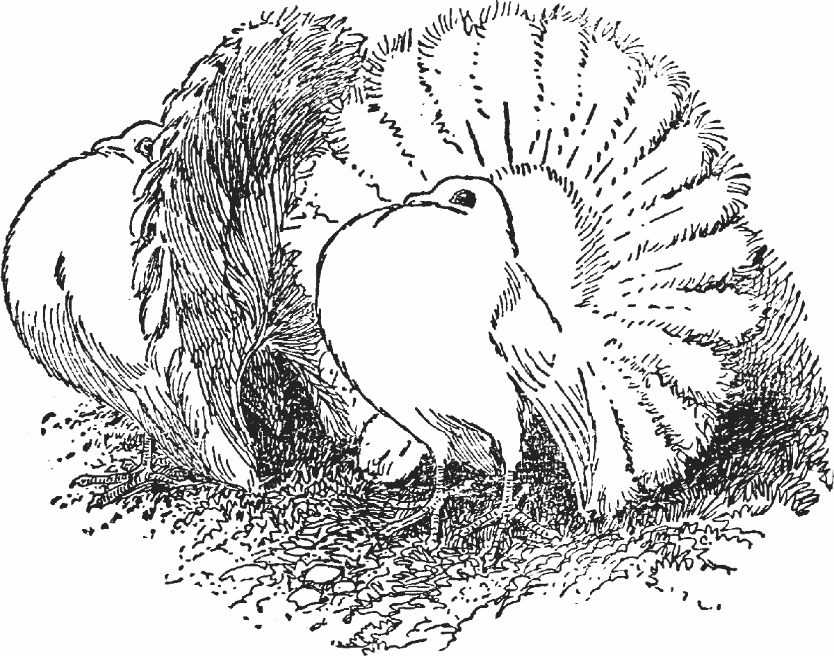 The female teased him a good deal by looking the other way and pretending not to see him, but finally he persuaded her to make a nest, where she laid eggs and hatched them, but the young ones only lived a short time—I think because she was shy and easily frightened from them.