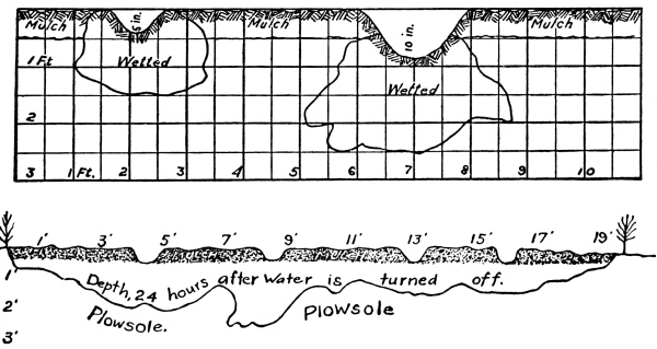 Water of Soils; The Regulation and Conservation of Soil, Moisture; Irrigation, 234.—Loosening of the Surface, 234.—Effects of Underdrains; Rain on Clay Soils, 235.—Winter Irrigation, 236.—Methods of Irrigation, 236.—Surface Sprinkling, 237.—Flooding, 237.—Check Flooding. Furrow Irrigation, 237, 238.—Figure Showing Penetration, 239.—Figure Showing Faulty Irrigation in Sandy Lands, 239.—Distance between Furrows and Ditches, 241.—Irrigation by Lateral Seepage, 242.—Basin Irrigation of Trees and Vines; Advantages and Objections, 243.—Irrigation from Underground Pipes, 245.—Quality of Irrigation Waters, 246.—Saline Waters; Figures of Effects on Orange Trees, 246.—Limits of Salinity, 246.—Mode of Using Saline Irrigation Waters; Apparent Paradox, 249.—Use of Drainage Waters for Irrigation, 250.—“Black Alkali” Waters, 250.—Variations in the Salinity of Deep and Shallow Wells, 250.—Muddy Waters, 251.—The Duty of Irrigation Waters, 251.—Causes of Losses, 252.—Loss by Percolation. Figure, 252.—Evaporation, 253.—Tables Showing same at California Stations, 255.—Evaporation in Different Climates; Table, 255.—Evaporation from Reservoirs and Ditches, 257.—Prevention of Evaporation; Protective Surface Layer, 257.—Illustrations of Effects of Tillage; Table, 258.—Evaporation through Roots and Leaves, 262.—Weeds waste Moisture, 264.—Distribution of Moisture in Soils as Affected by Vegetation, 264.—Forests and Steppes, 265.—Eucalyptus for Drying Wet Lands, 265.—Mulching; Effects on Temperature and Moisture, 266.