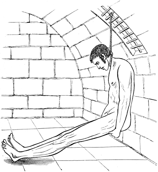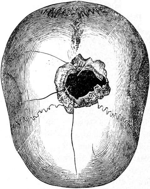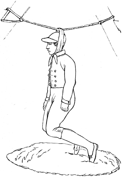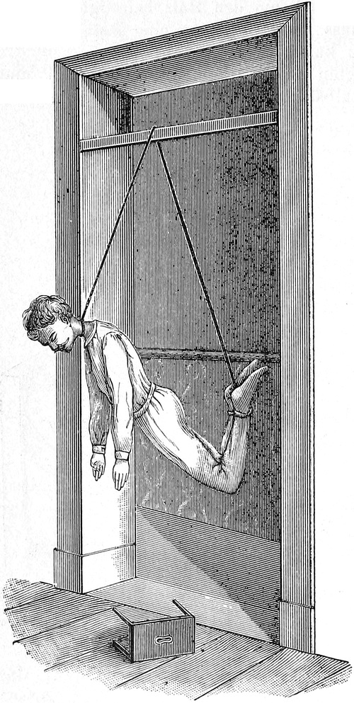 [595] Hierher gehört der von Rokitansky (Schmidt’s Jahrb. 1855, LXXXVII, pag. 85) beschriebene Selbstmord eines Melancholikers durch Bauchaufschlitzen und Herausreissen der Gedärme, ferner auch der sonderbare, im Wiener Physikatsberichte vom Jahre 1871, pag. 122, erwähnte Selbstmord eines 56jährigen Sparcassabeamten, der sich dadurch getödtet hatte, dass er einen mit Büchern schwer belasteten Kasten mit Stricken versah und an letzteren anziehend denselben auf sich stürzte, nachdem er sich mit dem Kopfe auf ein prismatisches Holzscheit gelagert hatte.