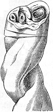 [564] Derartige Schädelbildungen, von denen Legrand du Saulle (l. c.) versichert, dass unter 100 Fällen 50mal zwischen ihnen und Geistesanomalien eine Beziehung besteht, erinneren vielfach an diejenigen niederer Menschenracen und jene von Thieren, insbesondere von Affen, und werden deshalb von mehreren anderen Autoren als Atavismus aufgefasst, d. h. als ein Rückfall in Verhältnisse, wie sie in den früheren Entwicklungsstadien derselben Race bestanden. Hierfür wurde auch herangezogen, dass manche habituelle Verbrecher noch andere körperliche Eigenthümlichkeiten aufweisen, die sich bei niederen Menschenracen als Norm finden, so nach Lombroso eine dunklere Färbung der Haut, ein auffallend dichtes und gekraustes Kopfhaar, spärliches Barthaar, grosse, vom Kopf abstehende Ohren und eine grössere Aehnlichkeit der Körperbildung beider Geschlechter. Die Anschauungen sind nicht ohne Berechtigung, doch lässt sich darüber ebenso streiten, wie über die Frage, ob die merkwürdigste Schädelmissbildung, die Mikrocephalie, als Atavismus oder als pathologische Erscheinungsform im engeren Sinne aufgefasst werden soll.