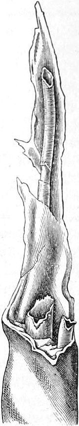 [536] Dass sich diese Quernähte des Körpers des Brustbeins bis in’s höhere Alter hinein erhalten, ist ein sehr seltenes Vorkommniss. In unserem Museum befindet sich ein solcher Fall. Er betrifft das Skelet eines 43jährigen Mannes, welcher sein Weib erstochen und dann sich selbst ertränkt hatte.