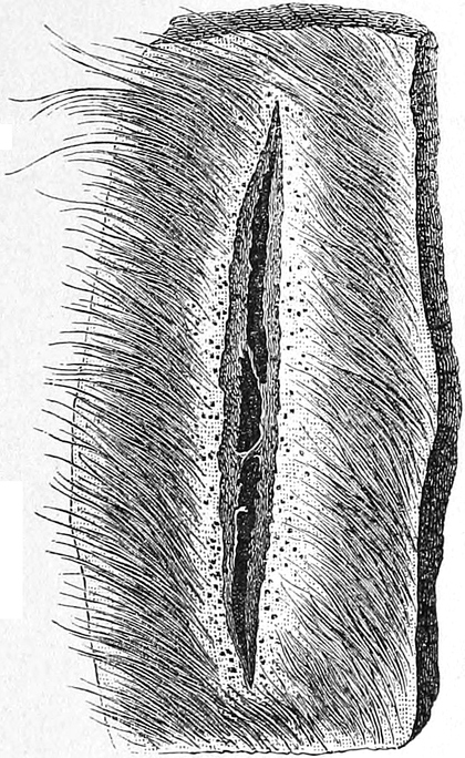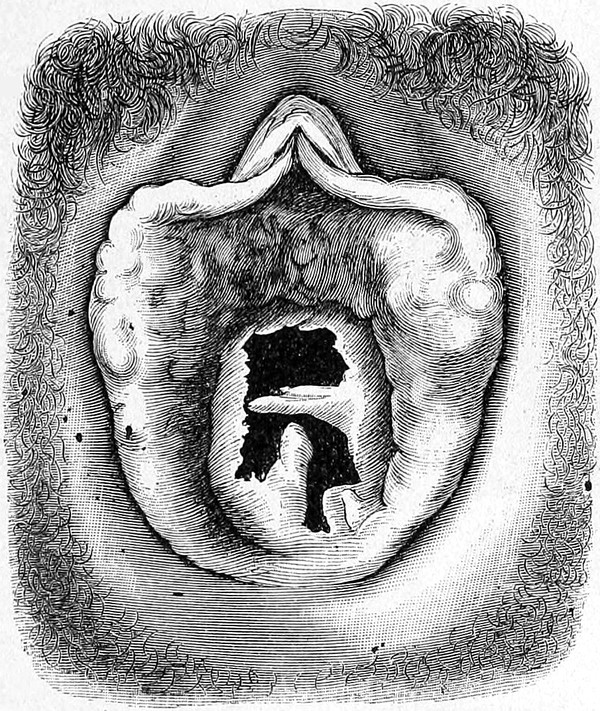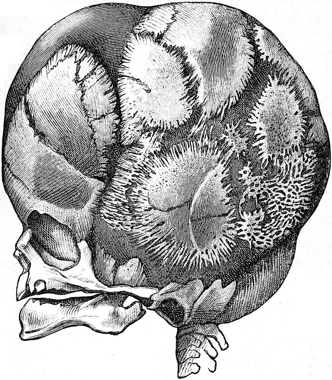 [513] Ein anderer Fall, in welchem bei einem 6jährigen (!) Mädchen eine embryonale Hinterhauptsspalte für eine Fissur gehalten wurde, findet sich in Schmidt’s Jahrb. 1851, Bd. LXIX, 224.
