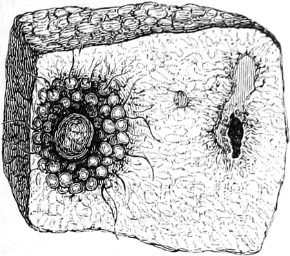 [522] Ueber die Ursache dieser Verfärbung s. unsere „Leichenerscheinungen“ und neuere Arbeiten von Pellacani (Virchow’s Jahresb. 1884, I, 463) und Schrank (Grüne Färbung fauler Eier. Wiener med. Jahrb. 1888, pag. 303).