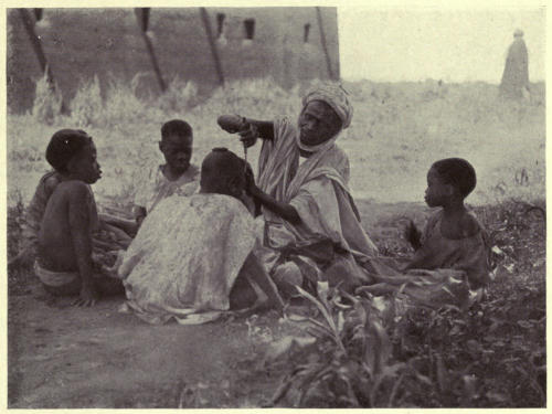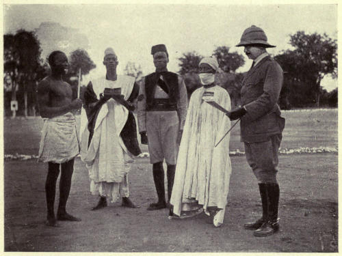 He has completely rearranged the market on the plan of Sir Hesketh Bell’s model town-planning. The streets are in straight lines and run sideways and at right-angles to one another. To an eminence high enough to be approached by a zigzag path he has removed the Court house of the Alkali, in order that cases may be heard clear of the turmoil of the market-place. Cheaply-made bridges he has placed across dykes, and so given a short and direct cut[326] between parts of the native quarter formerly connected only by a long detour. Another phase of his daily life is holding his Court for the trial of offences which do not go on the “list” of the Alkali.