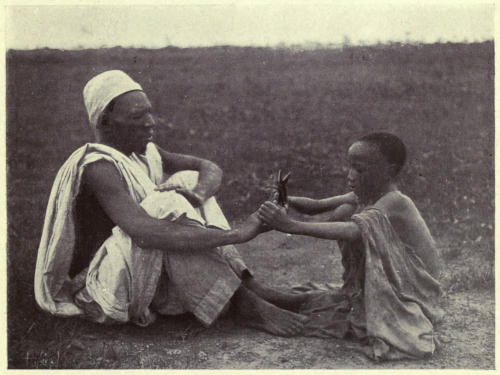 A historic figure is Abigah, King of Lokoja, with whose son I had the illuminating conversation on domestic felicity detailed in Chapter XIV. Mr Byfield kindly sent for the old man to meet me in the market. I had, of course, known that the King had been brought by Dr Barth to Europe and that he had visited England and seen Woolwich Arsenal. He told me that Dr Barth also took him to Berlin, and introduced him to the Emperor William I. (then simply King of Prussia), who, noticing Abigah’s strong and healthy appearance, tapped him on the chest and declared he was “a piece of black mahogany.” Although more than 50 years have passed, Abigah is still as active in walking as a young fellow. He speaks English quite well, not in the pidgeon manner.