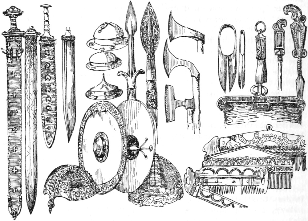 Mehr als anderes geben die Gräber und Kirchhöfe jener Völker hiervon Zeugnis; und in so reichem Maße, Jahr für Jahr so ungeheure Mengen der bemerkenswertesten Kunsterzeugnisse dem Tage wiederspendend, daß wir heute wahrhaft erstaunen über solche ungeahnte Fülle altgermanischen Werkes, vor allem aber über die unerwartete Einheit dieser Kunst, die, durchaus verschieden von aller anderen gleichzeitigen, nur wenig von ihr beeinflußt, beweist, daß der ungeheuren Völkermasse der Germanen einerlei Art des Geschmacks, einerlei Art sich zu schmücken, zu kleiden, zu waffnen, zu leben, gewiß auch zu wohnen und zu bauen eigen war.