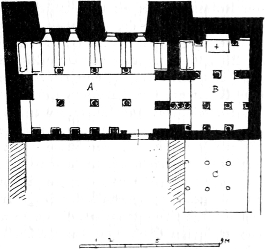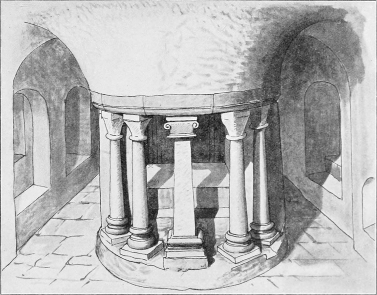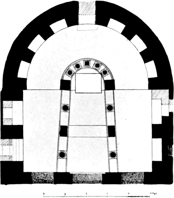 Martyrion: Kirche von zentralem Grundrisse oberhalb eines Märtyrergrabes.