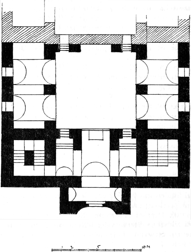 Petit appareil: fränkisches sehr regelmäßiges Mauerwerk in horizontalen Schichten aus kleinen ziemlich quadratischen Steinen.