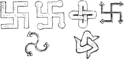Triskele: Dreibein, dreiarmiges Hakenkreuz.