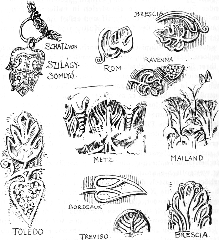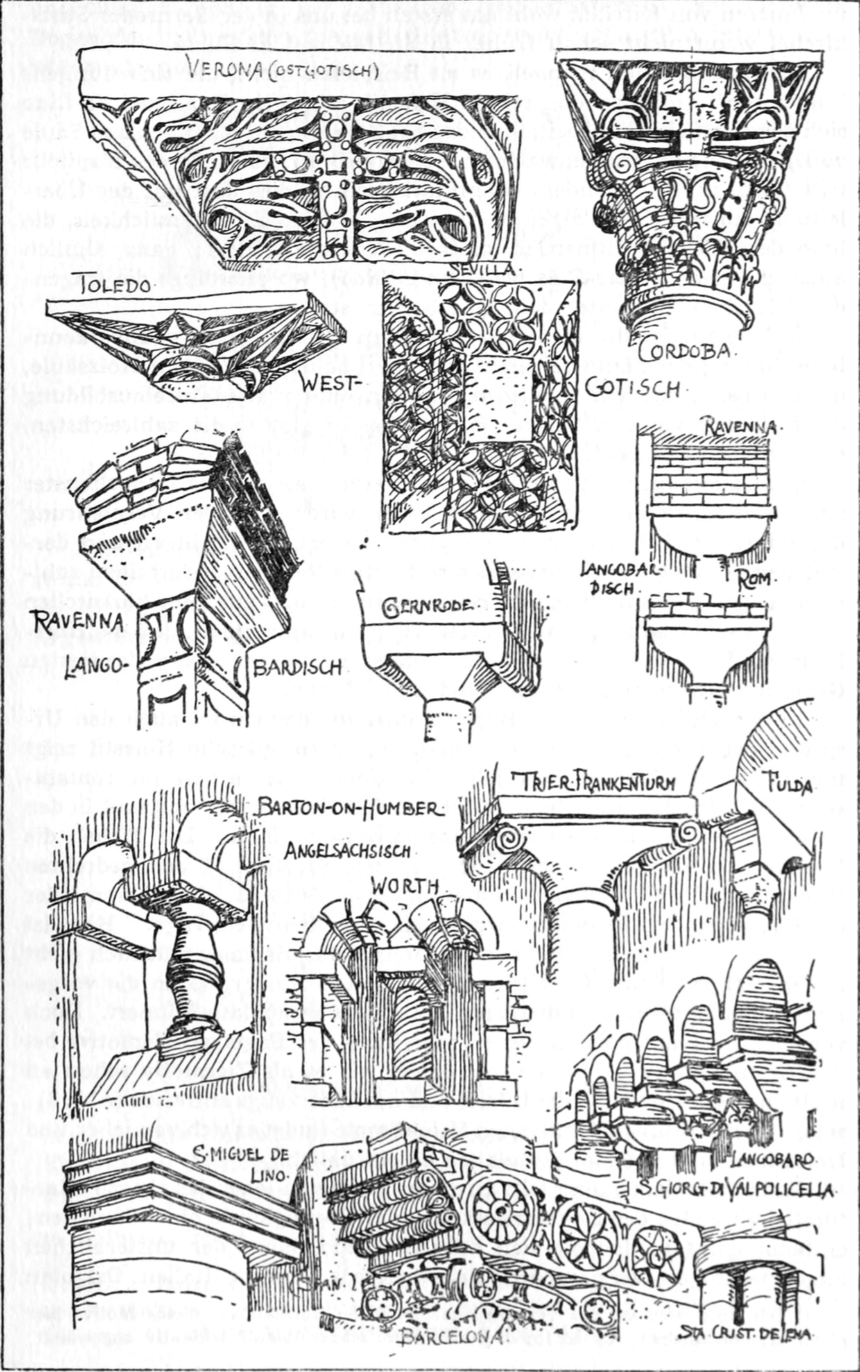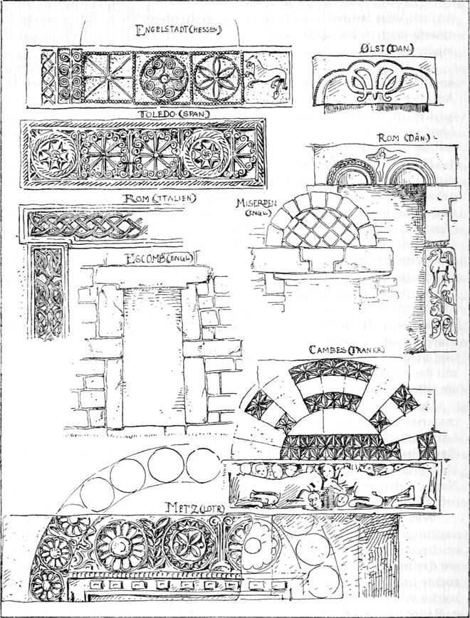 Überblicken wir dies ungeheure Gemälde, in dem wir die über das gesamte westliche und südliche Europa herübergefluteten germanischen Völkermassen vereinigt finden, so sehen wir vom 6. Jahrhundert an ganz Europa, mit Ausnahme des heutigen Rußlands und der eigentlichen Balkanhalbinsel, selbst die Nordküste Afrikas Germanen untertan oder von ihnen bevölkert; und so kann es nicht wundernehmen, daß damals eine völlig gleichartige und zwar germanische Kultur und Kunstauffassung, freilich in der Folge ganz verschwunden und gegenüber der südöstlichen so unendlich viel reicheren nicht beachtet, über alle diese Gebiete hin herrschte, von der Krim an bis nach Lissabon, von Nordskandinavien und England bis nach Karthago.