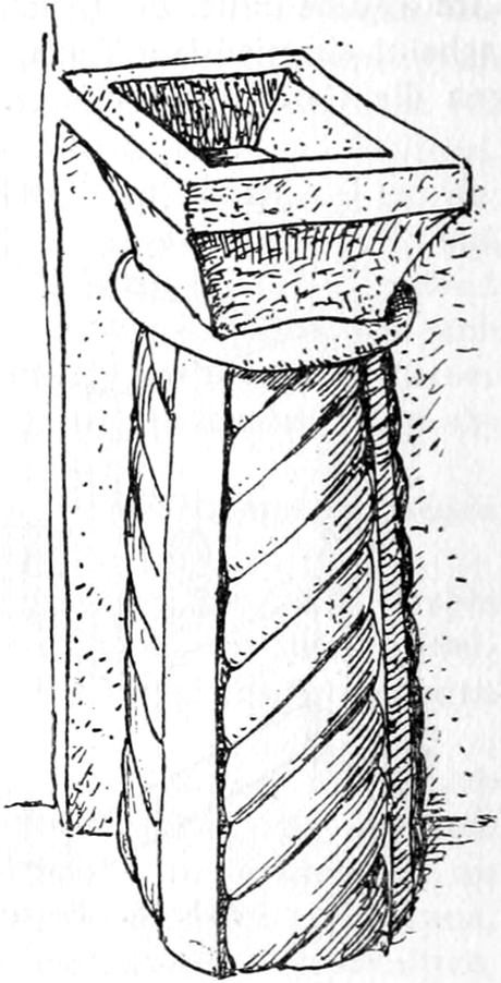 Sattelholz: kurzer Holzbalken quer über einer hölzernen Säule.