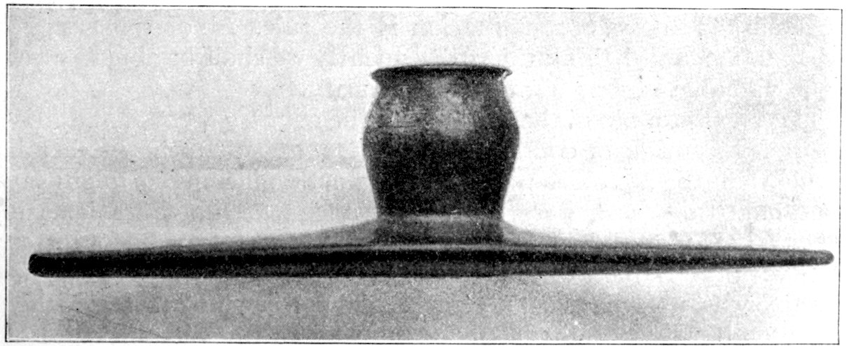 Fig. 412, from the Reverend William Beauchamp’s collection, is somewhat different from ordinary bird-stones, although it is included under that class. In 1899 I issued a bulletin, “The Bird-Stone Ceremonial,” which is now out of print. It illustrated fifty-three bird-stones. Since that time Mr. Charles E. Brown has published a study of bird-stones.[2] This is an excellent review.