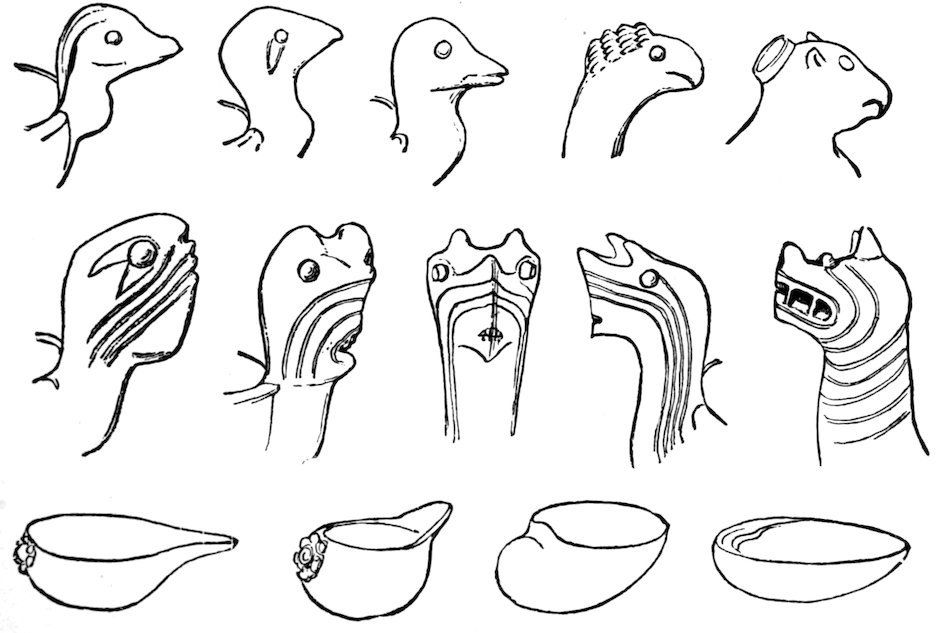 8Figs. 399, 400, 401, and the central object in Fig. 269 are all unfinished bird-stones. It was difficult for me to procure these, but after some years of correspondence they were obtained.