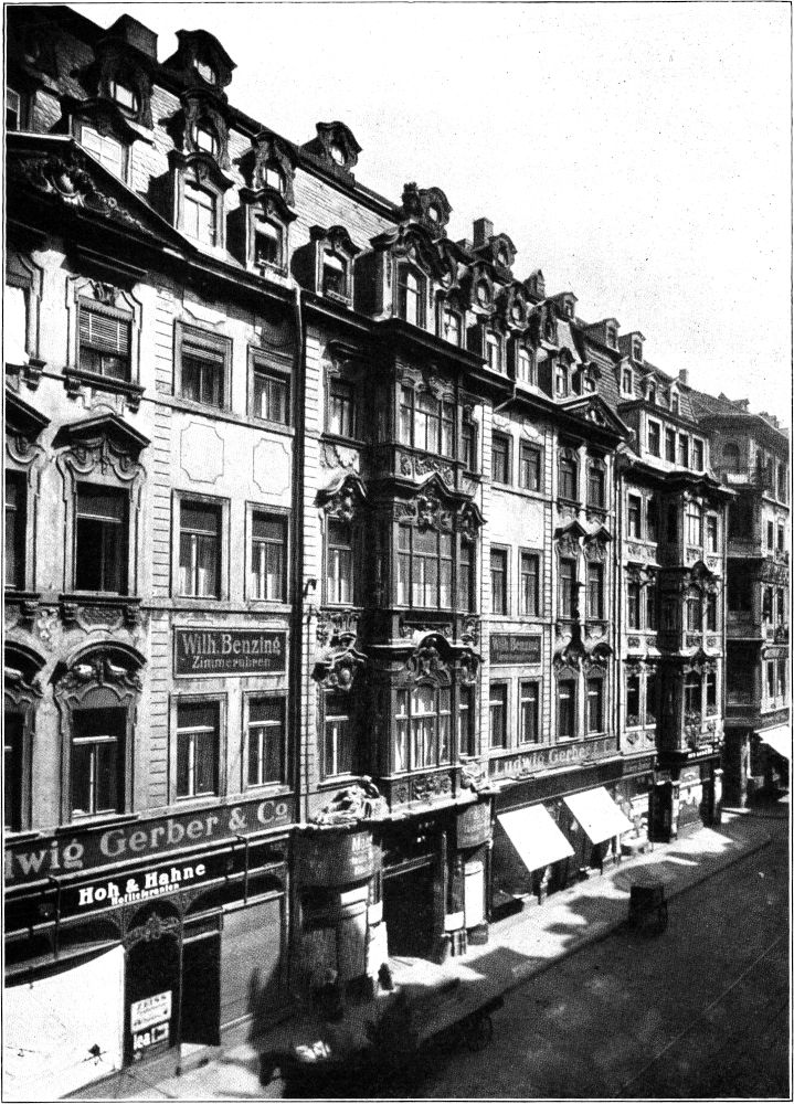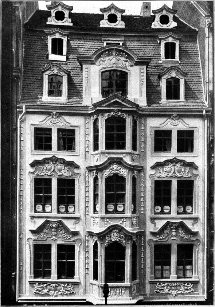 So hat es eine besondere Begründung, gerade an dieser Stelle auf die geschichtliche und ästhetische Bedeutung der Leipziger Häuser hinzuweisen, die zu[253] allem übrigen bisher auch kunsthistorisch weit weniger bekannt waren, als es ihr Wert verdiente[2].