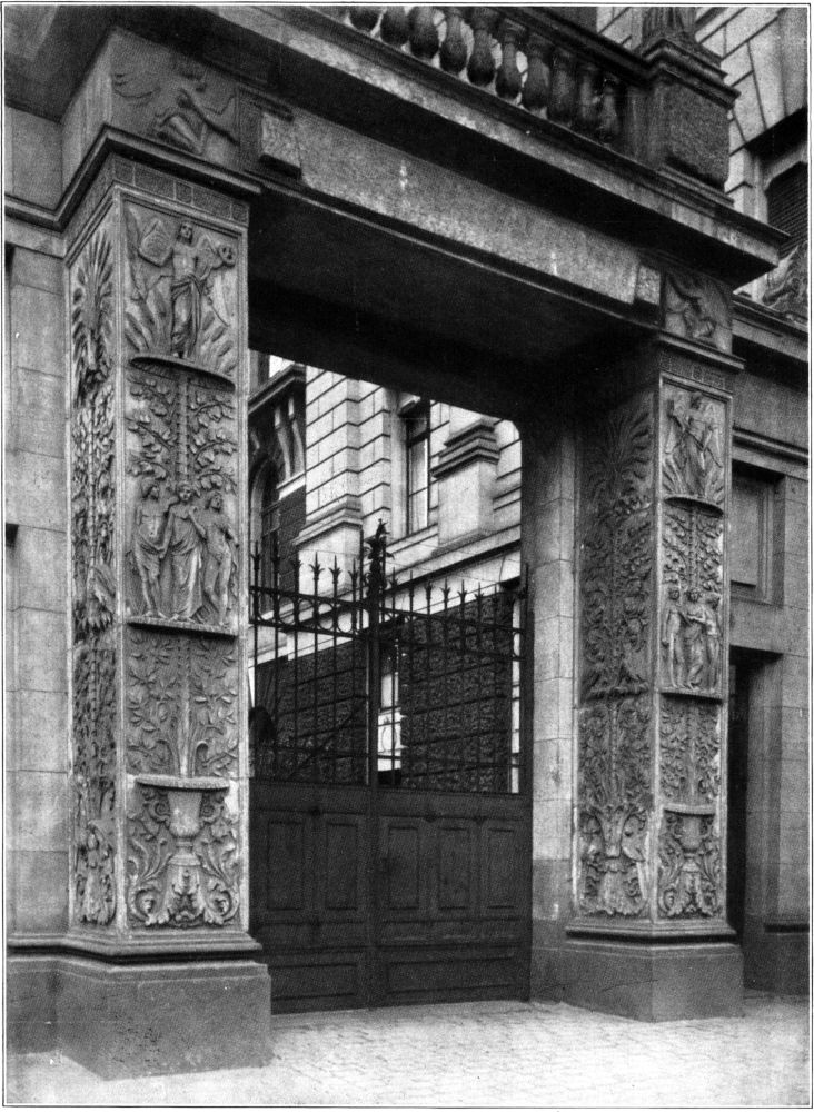 In Leipzig setzte frühzeitig die Bewegung des Klassizismus ein. Hier hatte bereits der Zopfstil, der Vorläufer der klassizistischen Periode, in Adam Friedrich Oeser, dem Maler und Lehrer Goethes, seinen Hauptvertreter. Der praktische Vertreter des Klassizismus wurde nach ihm der Architekt Johann Friedrich Dauthe, der in seinen Bauten dem Zuge der Zeit zur Antike einen starken Ausdruck zu geben verstand. Als eines seiner besten Werke kann noch heute die Innenarchitektur der Nikolaikirche gelten, deren ehemals gotischen Stil Dauthe in eine mustergültige naturalistische Form des Klassizismus brachte. Ein weiterer Bau dieses Architekten, die Frauenberufsschule auf der alten Moritzbastei, hat im vorausgehenden Artikel eine ausführliche Darlegung gefunden. Der Architekt von heute wird bei einem näheren Studium[279] der schlichten Fassade viel schöne Einzelheiten und feine Gedanken klassizistischen Empfindens wiederfinden.