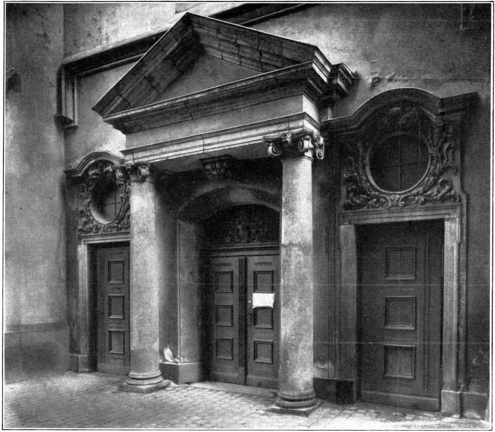 Wenn Leipzig unter den deutschen Großstädten nicht im Rufe einer Kunststadt steht, soweit es die bildenden Künste angeht, so hat das seinen Grund im wesentlichen darin, daß es hier in der Tat niemals eine eigentliche Maler- oder Bildhauerschule von Bedeutung gegeben hat. Und auch für die Baukunst mußten die Dinge, sollte man meinen, ungünstig liegen. Für die Errichtung großer Bauten weltlicher Natur etwa, wie Schlösser oder Paläste, kam Leipzig, das nie der ständige Wohnsitz eines Herrschers gewesen ist, nicht in Frage. Um so mehr muß es Bewunderung erregen, daß die bürgerliche Architektur der Stadt es vermocht hat, sie überall mit Gebäuden von viel höherem Werte zu schmücken, als gemeinhin bekannt ist. Denn wenn der Leipziger wie der Reisende auch die Denkmäler der deutschen Renaissance des sechzehnten Jahrhunderts, wie das Alte Rathaus und das Fürstenhaus, kennt und schätzt, so gehen beide doch fast stets achtlos an all den Bauten vorbei, die den alten Straßen Leipzigs eigentlich ihr Gepräge und ihren nur ihnen eigentümlichen Wert verleihen. Ich meine die Wohn- und Handelshäuser der Barockzeit, also des Jahrhunderts zwischen dem Dreißigjährigen Kriege und dem Beginn der Aufklärungsperiode, der Zeit unserer Klassiker. Nur den wenigsten dürfte bekannt sein, daß keine deutsche Stadt eine solche Fülle größter Bürgerbauten von guter künstlerischer Qualität aus dieser Zeit besitzt, wie es in Leipzig noch vor dreißig Jahren der Fall war. Es wäre sonst nicht möglich gewesen, daß so wenig für die Pflege dieser Kunstdenkmäler geschah, daß wieder und wieder wichtige Häuser in der inneren Stadt abgerissen wurden, um Meßpalästen oder Banken Platz zu machen[1], und daß manche der bedeutendsten in ernstlichen baulichen Verfall gerieten. Noch bis vor kurzem ließ man ruhig die Fassaden abbröckeln, entfernte man große Teile ihrer Stuckverzierungen, ließ im Inneren, um die Zimmereinteilung zu ändern, Stuckdecken zerstören und verunzierte vor allem Portale und Torwege durch Schaukästen, ganze Fassaden durch Reklameschilder.