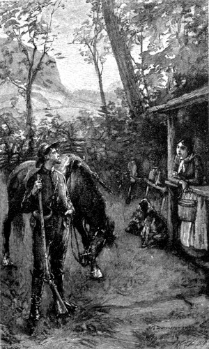 A young woman of twenty, perhaps, with a pale oval face and dark hair, and serene dark gray eyes, was on the rickety porch, leaning upon a rude shelf that served also as a balustrade; she had a cedar piggin in her hand, and the cow was lowing at the bars. On the doorstep there sat a rotund and stalwart, but preternaturally solemn young person, who now and again, with a corrugated countenance, gnashed his gums. His time and energies were expended in that trying occupation known as "cuttin' yer teeth," an acquisition which he would some day value more highly than now. He sought, as far as an abnormally developed craft might compass, to force, by many an infant wile, his elders to share his woes, and it was with a distinctly fallen countenance that his father hearkened to his mother's parenthetical request to "'bide hyar an' company leetle Moses whilst I be a-milkin' the cow."