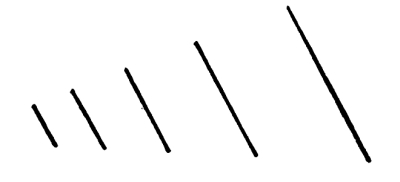 183. We have more or less movement in every composition of tones which [Pg 185] is unbalanced, in which the eye is not held between equivalent attractions, either upon a vertical axis or upon a center. In all such cases, of tones unbalanced, the movement is in the direction of the greatest contrast. Unless the movement is regular and marked in its measures, as I think it is in all regular and perfect gradations, the movement is not rhythmical. We get Rhythm, however, in the repetition of the movement, whatever it is, in equal or lawfully varying measures, provided the direction of the movement remains the same or changes regularly or gradually. If the line of the movement is up-to-the-right forty-five degrees we have rhythm in the repetition of the movement at equal or lawfully varying intervals, without changes of direction; but we should have Rhythm, also, if the direction of the movement, in its repetitions, were changed, regularly or gradually; if, for example, the direction were changed first from up-right forty-five degrees to up-right forty degrees, then to up-right thirty-five degrees, then to up-right thirty degrees, this at equal or at lawfully varying intervals. In this way the movement of the composition repeated may be carried on and gradually developed in the movement of the series. A reference to Fig. 161, p. 94, and to Fig. 119, p. 68, will help the reader to understand these statements.