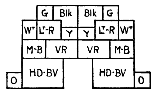 In this case, for example, we have the indication of a possible balance of two parts of Light Red and one part of Dark Green on a ground-tone of Middle Violet, the difference of contrast in one case making up for a difference of quantity and of contrasting edge in the other.