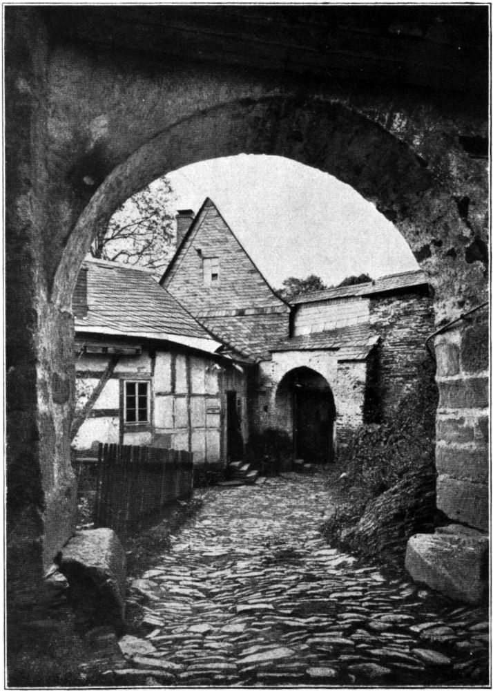 Die Friedensburg ist oft das Ziel von Wanderungen oder der Ort, wo Erholung in der frischen grünen Bergwelt gesucht wird. Wer die eigenartige Stimmung genießt, die das Schloß vermittelt, empfindet dann auch den Wunsch, etwas von den vergangenen Geschlechtern zu vernehmen, die hier gelebt haben, und aus deren Lebensbedürfnissen heraus die Gebäude entstanden sind. Die Frage wird dann oft gestellt: Wann ist die Burg gebaut worden? – Die Antwort kann nur lauten: Eine Burg ist das Werk von Jahrhunderten! – Man hat ihre Geschichte abzulesen an der Form der Bauteile, am Baustoff, an gediegener oder flüchtiger Arbeit und an den Schmuckbeigaben ihrer Einrichtung. Aber diese Formenschrift zu entziffern, gelingt nicht ohne weiteres und ist nicht jedem geläufig. Dann erhebt sich die Frage nach geschichtlicher Belehrung in Büchern oder Urkunden. Gedruckte Literatur über Leutenberg ist nur ganz spärlich vorhanden. Einzelaufsätze sind in Fachschriften zerstreut. Die Urkunden der Stadt sind Opfer der Feuersbrünste geworden, mit denen Leutenberg heimgesucht wurde wie kaum eine zweite Stadt. Die Urkunden im ehemals Fürstlichen, jetzt Thüringischen[6] Staatsarchiv zu Rudolstadt sind noch nicht zusammenhängend durchforscht worden auf Leutenberger Nachrichten hin.