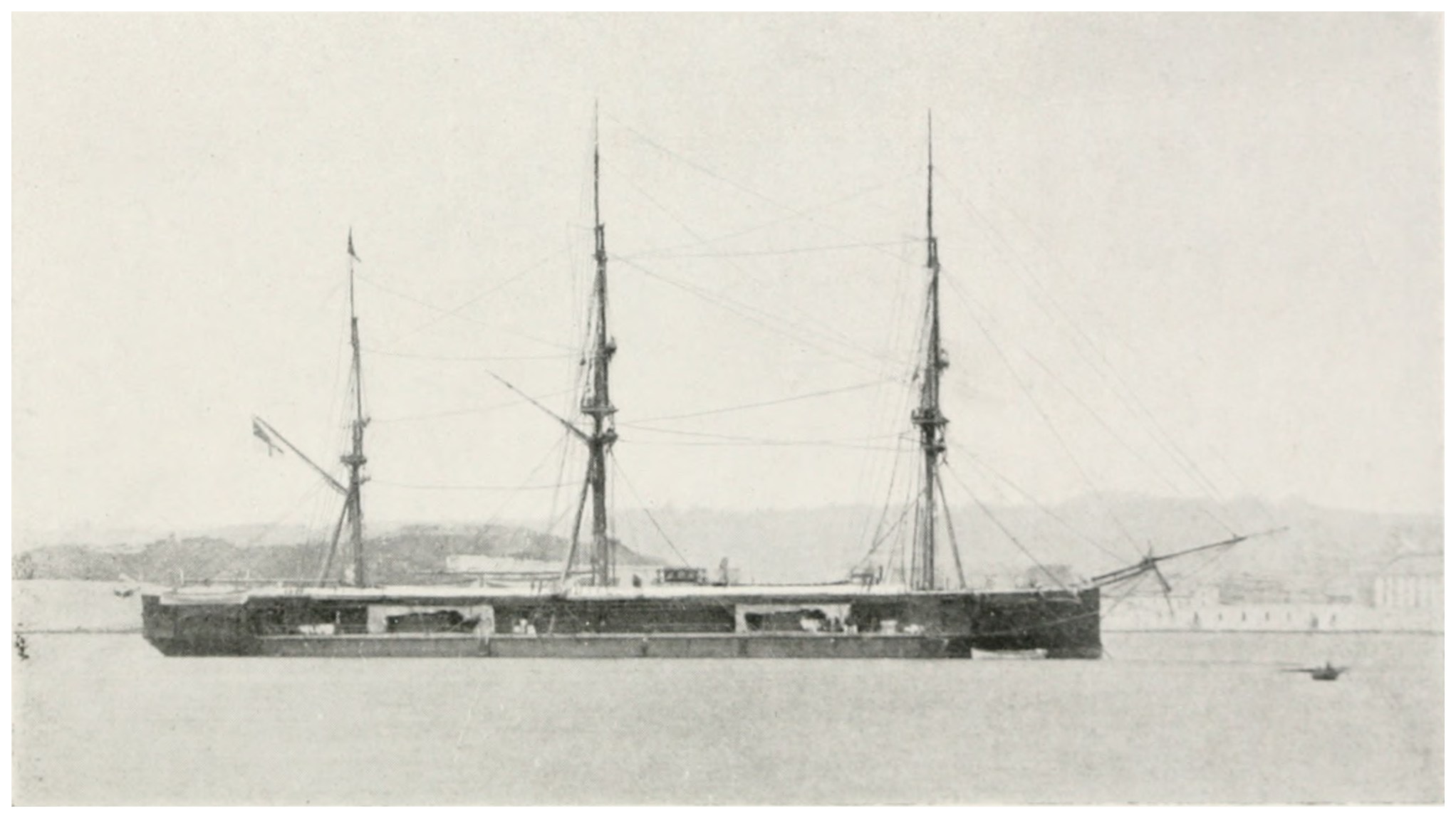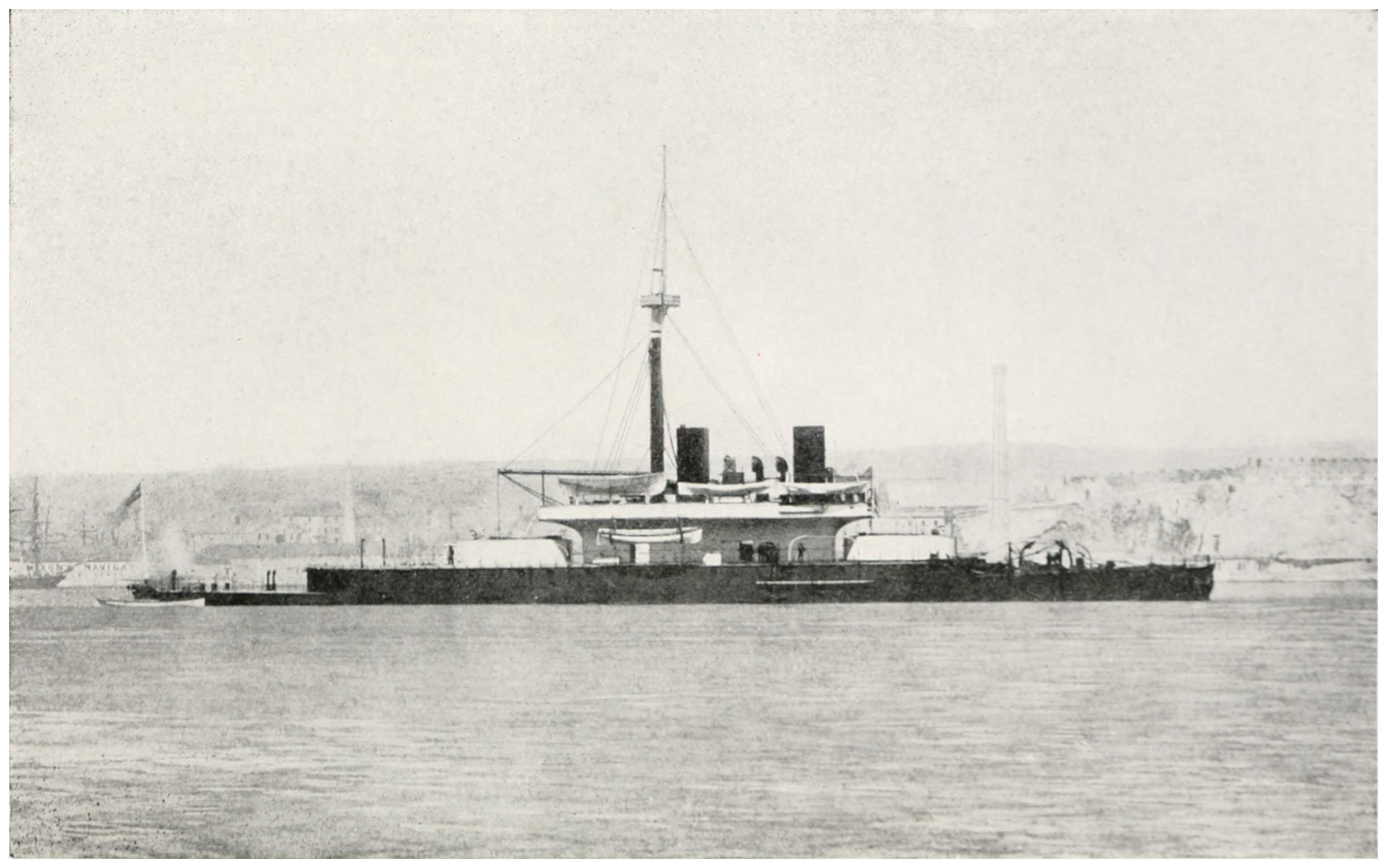 106 The Sultan was built as a ship-rigged ship. In 1894–96 she was “reconstructed,” two military masts being substituted for her original rig. She was also re-engined and re-boilered by Messrs. Thompson, of Clydebank. Beyond going out for the naval manœuvres one year she did not, however, perform any service in her altered condition, and is now used as a hulk.