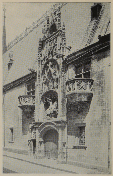 The corridor has been a sounding-board since dawn,[186] and all during the night camions were being driven over the cobblestones, and motor horns rent the darkness. My room looks out over an old garden. A tall, dead tree-trunk has immemorial ivy clinging to it, and there is an old round well, half covered, and beyond the gate, with ivy and moss-grown urns, is a street that would have been quiet except for the camions; and I can see a row of distinguished-looking, plain-façaded gray houses of another century, opposite.