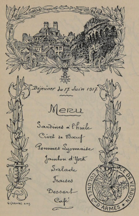 | Souvenir Menu of Luncheon at Verdun, June 17, 1917 | ” | 46 |