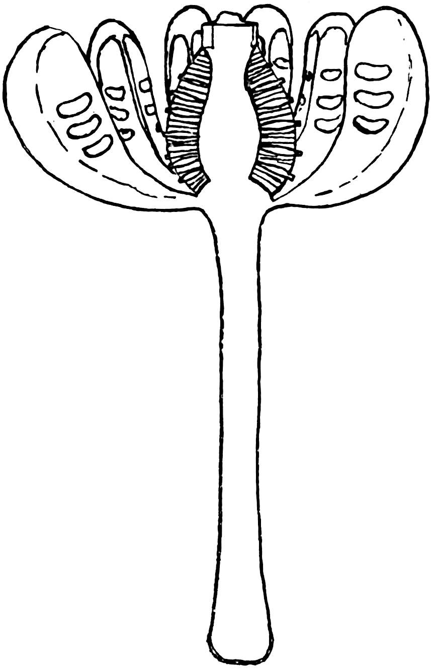 This genus[1659] was named after the Swedish naturalist Nilsson who had figured certain plants from the Lias of Höör referred by Fries to the Ferns: these were named by Brongniart Nilssonia brevis and N. elongata and classed with the Cycads. The type-specimens of the latter species are regarded by Nathorst as a form of N. brevis. The history of the genus is fully discussed in Nathorst’s able monograph[1660]. Nilssonia, founded on fronds which with one exception are known only as casts or impressions, may be thus defined: Fronds with circinate vernation, at least in the type-species Nilssonia brevis (fig. 619, C, D), similar in shape to the leaves of Scolopendrium vulgare and Polypodium irioides and to such unusual forms of Cycas fronds as those reproduced in figs. 384, 387, I[1661], in which the laminae of the pinnae are concrescent and form a continuous or deeply cut lamina. They may reach a length of 60 cm. and a breadth of 10 cm. and some specimens are known in which the leaf is less than 1 cm. in width. The lamina is occasionally entire, but in the great majority of cases it is more or less deeply cut into segments of unequal breadth varying considerably in size and shape even in the same species, usually deep and truncate and sometimes long and narrow (e.g. N. pterophylloides, fig. 619, B). An important distinguishing feature is the attachment of the lamina to the upper face of the rachis which it covers: the extension of the lamina over the surface of the frond axis and the rare occurrence of branching 568of the veins are characters in which Nilssonia differs from Taeniopteris. The veins are given off at right-angles or obliquely from a very narrow groove occupying the median line of the rachis; they are nearly always simple and in some of the more fleshy leaves, e.g. N. brevis, they are seldom visible. The surface of the lamina may be smooth or transversely corrugated. The rachis forms a prominent rib on the under surface of the frond (fig. 620, A) and may be continued beyond the lamina as a short petiole. Epidermal cells polygonal or rectangular, with straight walls in contrast to the sinuous walls of Taeniopteris; some of the cells bear strongly cuticularised papillae, possibly the bases of hairs (compare the hairs on the fronds of Acrostichum crinitum, a Fern with leaves similar in shape to some of the large entire fronds of N. orientalis though relatively broader and with anastomosing veins). Stomata usually confined to the lower epidermis and not very numerous; guard-cells of rounded contour and without any special thickening surrounded by 6–8 accessory cells with thickened walls (fig. 611, B) forming a chimney slightly raised over the stomatal pore[1662]. In Nilssonia the guard-cells do not exhibit that regularity of orientation which characterises the stomata of Ptilophyllum, Otozamites, and other Bennettitalean fronds. Little is known of the anatomy of the leaves: in a petrified leaf of N. orientalis[1663] from Upper Cretaceous rocks in Japan there is no palisade-tissue and small groups of sclerenchyma occur above and below the veins. The xylem appears to be centripetal, but the preservation is far from satisfactory. A few secretory canals were found near the edge of the leaf. We have no certain knowledge of the reproductive organs. The small circular projections figured by Schenk[1664] on some leaves of Nilssonia polymorpha as sporangia have no claim to be so regarded. In the description of N. brevis reference is made to some seeds discovered by Nathorst which may belong to that species. Nathorst suggests the possibility that the Rhaetic fossil Stenorrachis scanicus Nath. may be the seed-bearing shoot of a Nilssonia, either N. brevis or N. polymorpha, and if this surmise is correct it almost necessarily involves the genus Beania[1665] which has been tentatively referred to the 569Ginkgoales though without any convincing evidence to support such connexion. Nothing is known of the stems: the occasional occurrence of leaves converging towards a common support points to a Cycadean habit. It is possible, as Nathorst suggests, that the Rhaetic species Bucklandia Saportana[1666] may be the stem of a Nilssonia.