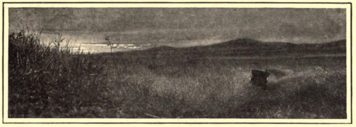 We had obtained great skill on mud holes. We could now tell the hard bottom ones from the mires without sounding. Driving to the edge of a sort of plateau, there spread before us a plashy lowland, which seemed to be nothing but a succession of marshes. On the other side rose the hazy outlines of a mountain range, but we knew what work it would take to reach those hills. We knew that the tall grass hid mud holes and ruts [86]where ox carts had been laboriously dragged across.