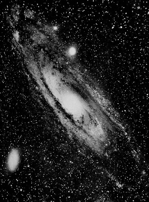 The astronomer might be able to give a partial answer if he could find evidence of life on some other planet, for we should then at least know that life had occurred more than once in the history of the universe, but so far no convincing evidence has been forthcoming. Some astronomers interpret certain markings on Mars as canals, which they believe to be the handiwork of intelligent beings, but this interpretation is not generally accepted. Again, seasonal changes necessarily occur on Mars as on the earth, and certain phenomena accompany these which many astronomers are inclined to ascribe to the growth and decline of vegetation, although they may represent nothing more than rains watering the desert. There is no definite evidence of life, and certainly no evidence of conscious life, on Mars—or indeed anywhere else in the universe.