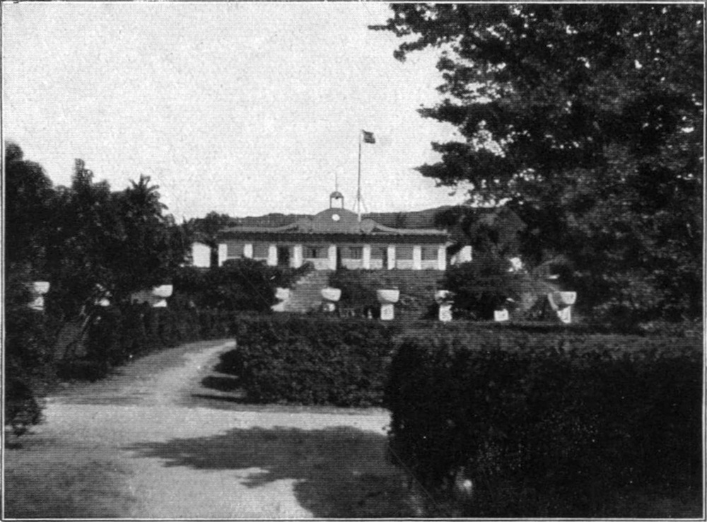 Dort, wo die europäische Niederlassung bereits in die japanische Stadt übergegangen ist, steht es, in der Parkstraße, einer großen, öffentlichen Gartenanlage gegenüber.