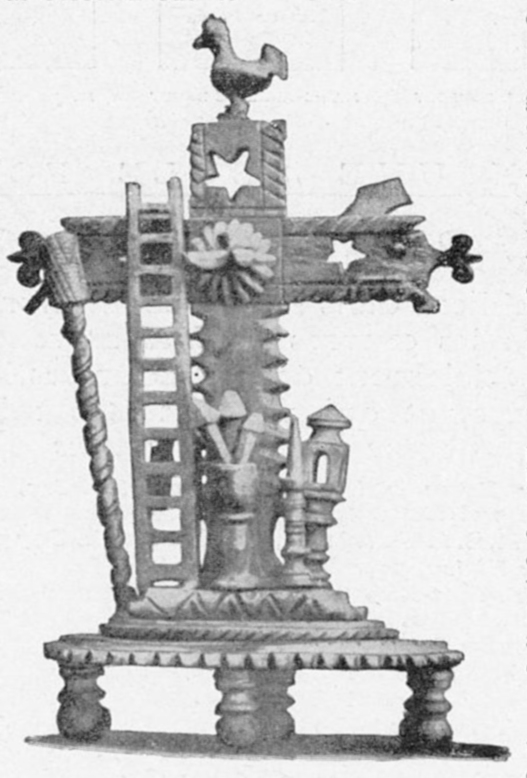 Les mineurs qui ne mangent de la viande que rarement consacrent le souvenir de ces festins en sculptant parfois très curieusement les os. Un de ces naïfs ouvrages représente les attributs de la Passion.