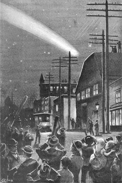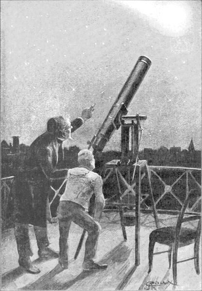 Mr Dean Forsyth aurait dû être content, la suppression de son compétiteur supprimant radicalement toute compétition! Mais, avant d’être un astronome passionné, Mr Dean Forsyth était un brave homme, et l’intensité de son émotion le rendit à sa vraie nature. Sa haine factice disparut, tel un mauvais rêve qui disparaît au réveil, et il ne subsista dans son cœur que le souvenir des anciens jours. C’est ainsi que, sans même y penser, comme on fait un geste réflexe, Mr Dean Forsyth—que ceci soit à sa gloire!—au lieu de se réjouir de la mort d’un adversaire, vola bravement au secours d’un vieil ami en péril.