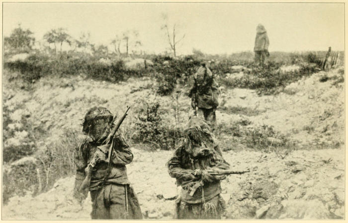 | Signal-Corps Men at Work Repairing the Tangle of Copper Wires Which Link the Infantry in the Front-Line Trenches with the Guns | 9 |