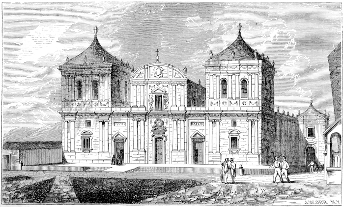 | CHAPTER IX.—The City of Leon—Originally built on the Shores of the Lake Managua—Cause of its Removal—Its present Site—Dwellings of its Inhabitants—Style of Building—Devastation of the Civil Wars—Public Buildings—The Great Cathedral—Its Style of Architecture; Interior; Magnificent View from the Roof—The “Cuarto de los Obispos,” or Gallery of the Bishops—The University—The Bishop’s Palace—“Casa del Gobierno”—“Cuartel General”—The Churches of La Merced; Calvario; Recoleccion—Hospital of San Juan de Dios—Stone Bridge—Indian Municipality of Subtiaba—Population of Leon—Predominance of Indian Population—Destruction of Stocks—Mixed Races—Society of Leon—The Females; their Dress—Social Gatherings: the “Tertulia”—How to “break the Ice” and open a Ball—Native Dances—Personal cleanliness of the People—General Temperance—“Aguardiente” and “Italia”—Food—The Tortilla—Frijoles—Plantains—The Markets—Primitive Currency—Meals—Coffee, Chocolate, and “Tiste”—Dulces—Trade of Leon, | 237 |