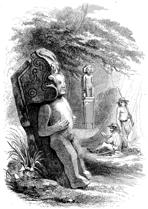 | CHAPTER XI.—Antiquities—Ancient Statue in the Grand Plaza—Monuments on the Island of Momotombita in Lake Managua—Determine to visit them—The Padre Paul—Pueblo Nuevo and our Old Hostess—A Night Ride—“Hacienda de las Vacas”—A Night amongst the “Vaqueros”—The Lake—Our Bongo—Visit the Hot Springs of Momotombo—Attempt to reach one of the “Infernales” of the Volcano—Terrible Heat—Give up the Attempt—Oviedo’s Account of the Volcano—“Punta de los Pajaros”—Momotombita—Dread of Rattlesnakes—The Monuments—Resolve to remove the largest—A Nest of Scorpions—Tribulation of our Crew—Hard Work—How to ship an Idol—Virtues of Aguardiente—“Purchasing an Elephant”—More “Piedras Antiguas”—The Island once Inhabited—Supposed Causeway to the Main-land—A Perilous Night Voyage—Difficult Landing—Alacran, or Scorpion Dance—A Foot-march in the Forest—The “Hacienda de los Vacas” again—Scant Supper—Return to Leon—The Idol sent, via Cape Horn, to Washington—A Satisfied Padre—Idols from Subtiaba—Monstrous Heads—Visit to an Ancient Temple—Fragments—More Idols—Indian Superstitions—“El Toro”—Lightning on Two Legs—A Chase after Horses—Sweet Revenge—“Capilla de la Piedra”—Place of the Idol—The Fray Francisco de Bobadilla—How he Converted the Indians—Probable History of my Idols—The Ancient Church “La Mercedes de Subtiaba”—Its Ruins—“Agarrapatas”—Tropical Insects—Snakes and Scorpions versus Fleas and Wood-ticks—A Choice of Evils, | 285 |