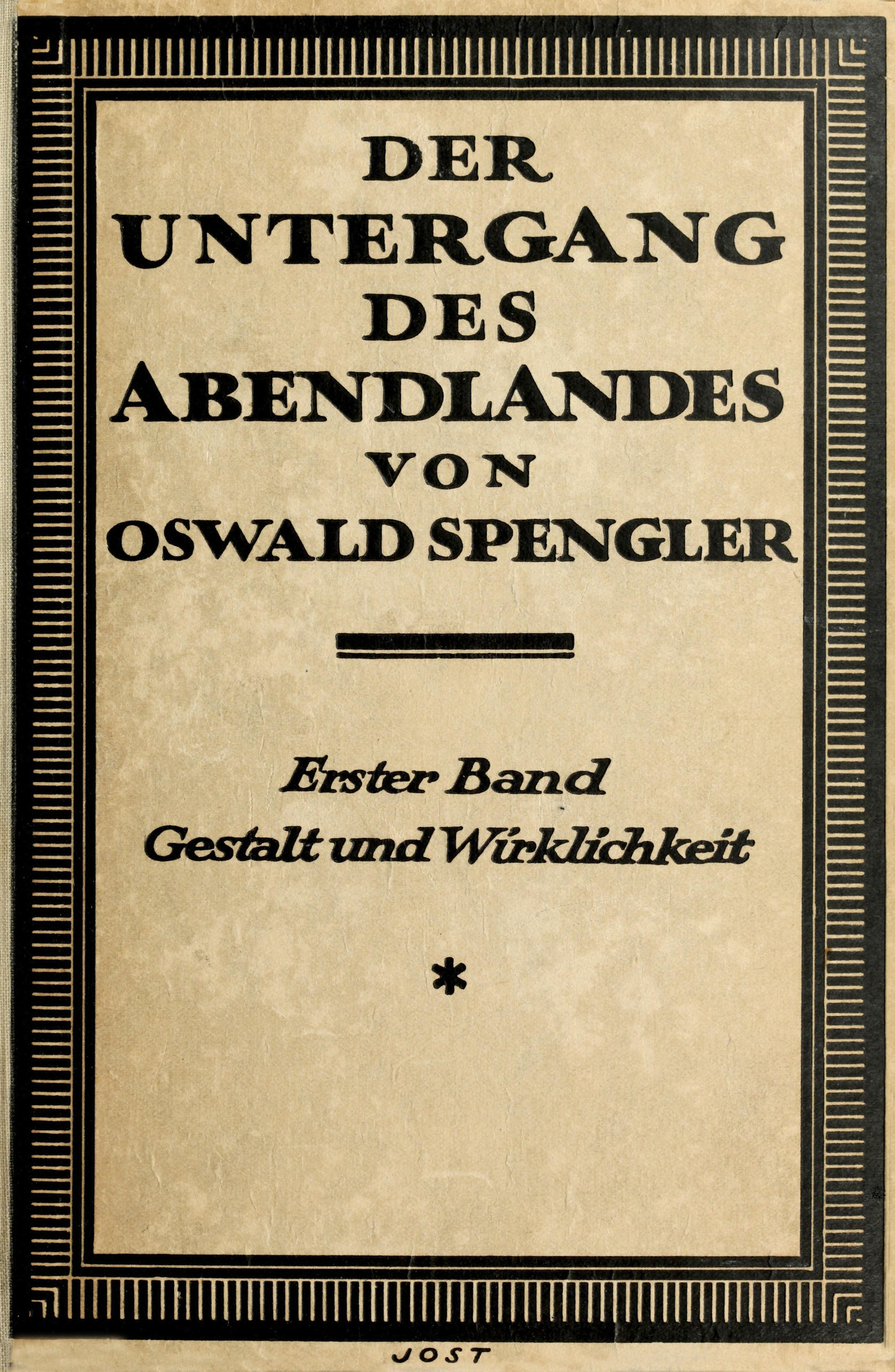Will man erfahren, in welcher Gestalt das Erlöschen der abendländischen Kultur vor sich geht, so muß man zuvor erkannt haben, was Kultur ist, in welchem Verhältnis sie zur sichtbaren Geschichte, zum Leben, zur Seele, zur Natur, zum Geiste steht, unter welchen Formen sie in Erscheinung tritt und inwiefern diese Formen — Völker, Sprachen und Epochen, Schlachten und Ideen, Staaten und Götter, Künste und Kunstwerke, Wissenschaften, Rechte, Wirtschaftsformen und Weltanschauungen, große Menschen und große Ereignisse — Symbole und als solche zu deuten sind.
