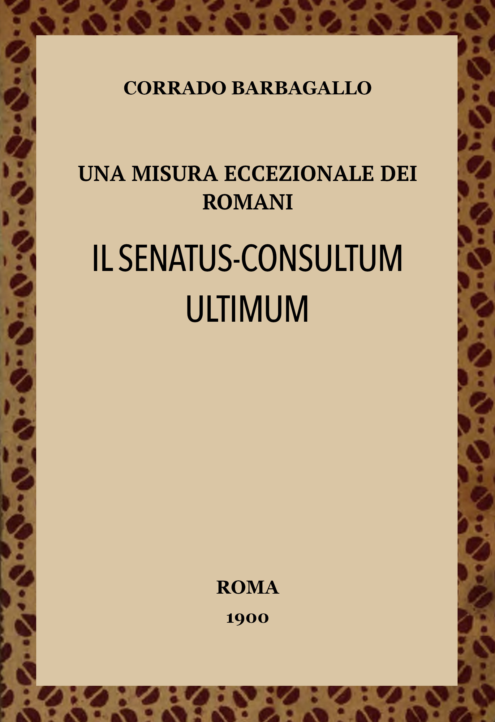 Come si rileva dal titolo, con queste pagine io ho voluto scrivere un lavoro di storia e di dritto pubblico. Ho quindi mirato ad un triplice scopo: 1) narrare accuratamente i vari casi, pei quali in Roma fu votato il s. c. u.; 2) ricostruire la situazione giuridica, che allo stato romano imponeva tale misura eccezionale; 3) spiegarne la natura particolare in relazione con la situazione politica e sociale del tempo.