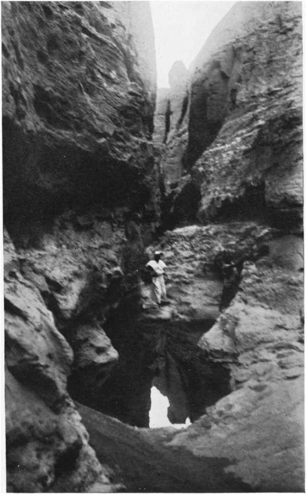 In the evening of the second day’s march, when we were drawing near the foothills of Ennedi, we had not yet found any well, and our tiny store of water was used up. But spying in the west a notable gap in the line of hills, I thought we should be likely to find a water-point there, and profited by the coolness of the night to try to reach it. At dawn we came out on a fine river, dried up, where we got a little water by digging holes in the sand. By good luck our guide, Sougou, recognized that we had reached Oued Mourdi, where he had come by another route some six months earlier; thanks to which discovery, after a little search we were able to bivouac beside the well of Diona.