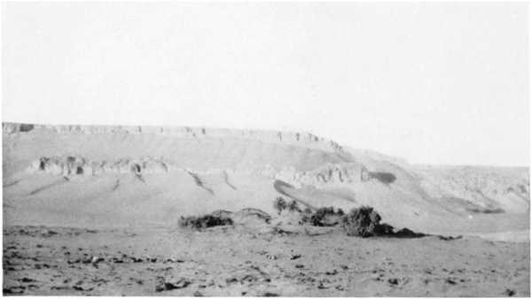 3. The western wall of the Qattara depression 35 km. S.S.W. of Qara Oasis. Top of cliff about 3 m. and floor of depression 133 m. below sea-level
