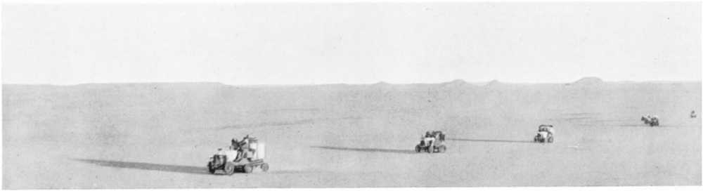 2. Caterpillar cars carrying heavy loads over a sand-dune between Bir Terfawi and Gebel Owenat