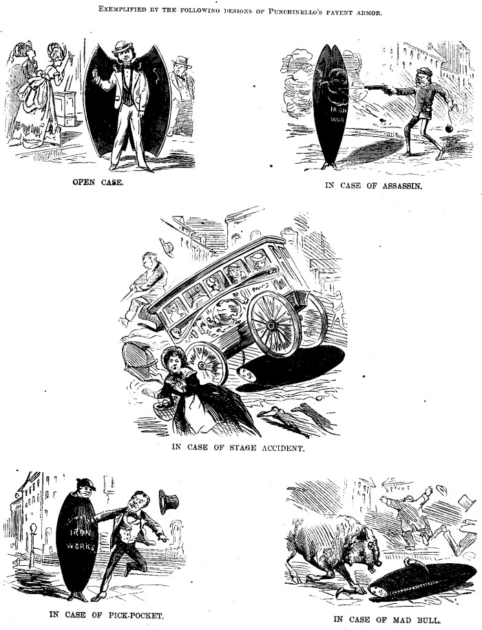 | APPLICATIONS FOR ADVERTISING IN "PUNCHINELLO" SHOULD BE ADDRESSED TO J. NICKINSON, Room No. 4, 83 NASSAU STREET. | PUNCHINELLO. With a large and varied experience in the management and publication of a paper of the class herewith submitted, and with the still more positive advantage of an Ample Capital to justify undertaking, the PUNCHINELLO PUBLISHING CO. OF THE CITY OF NEW-YORK, Presents to the public for approval, the NEW ILLUSTRATED HUMOROUS AND SATIRICAL WEEKLY PAPER, PUNCHINELLO. The first number of which will be issued under date of April 2, 1870, and thereafter weekly. PUNCHINELLO will be National, and not local,—and will endeavor to become a household word in all parts of the country; and to that end has secured a VALUABLE CORPS OF CONTRIBUTORS in various sections of the Union, while its columns will always open to appropriate first-class literary and artistic talent. PUNCHINELLO will be entirely original; humorous and witty, without vulgarity, and satirical without malice. It will be printed on a superior tinted paper of sixteen pages, size 13 by 9, and will be for sale by all respectable newsdealers who have the judgment to know a good thing when they see it, or by subscription from this office. The Artistic department will be in charge of Henry L. Stephens, whose celebrated cartoons in VANITY FAIR placed Jim in the front rank of humorous artists, assisted by leading artists in their respective specialities. The management of the paper will be in the hands of WILLIAM A. STEPHENS, with whom is associated CHARLES DAWSON SHANLY, both of whom were identified with VANITY FAIR. ORIGINAL ARTICLES, Suitable for the paper, and Original Designs, or suggestive ideas or sketches for illustrations, upon the topics of the day, are always acceptable, and will be paid for liberally. Rejected communications can not be returned, unless postage-stamps are inclosed. Terms: One copy, per year, in advance.......................... $4.00 Single copies, ten cents, A specimen copy will be mailed free upon the receipt of ten cents. One copy, with the Riverside Magazine, or any other magazine or paper, price, $2.50, for..................... 5.50 One copy, with any magazine or paper, price, $4, for..... 7.00 All communications, remittances, etc., to be addressed to PUNCHINELLO PUBLISHING CO. 83 Nassau Street. New-York. [P.O. Box 2783.] | Mercantile Library, Clinton Hall, Astor Place New-York. This is now the largest circulating Library In America, the number of volumes on its shelves being 114,000. About 1000 volumes are added each month; and very large purchases are made of all new and popular works. Books are delivered at members' residences for five cents each delivery. TERMS OF MEMBERSHIP: TO CLERKS, $1 Initiation, $3 Annual Dues. TO OTHERS, $5 a year. SUBSCRIPTIONS TAKEN FOR SIX MONTHS. BRANCH OFFICES NO. 76 CEDAR STREET, NEW-YORK, AND AT Yonkers, Norwalk, Stamford, and Elizabet |