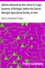 Henry Howland Crapo Address delivered by Hon. Henry H. Crapo, Governor of Michigan, before the Central Michigan Agricultural Society, at their Sheep-shearing Exhibition held at the Agricultural College Farm, on Thursday, May 24th, 1866