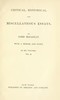 Critical, Historical, and Miscellaneous Essays; Vol. 1