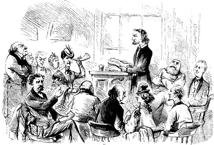 To suffer and be strong. Then the Senate betook itself to considering an appropriation for educating the colored infant. Mr. WILSON strongly approved it, not only on account of the colored infant, for whose education he did not in a general way feel any particular solicitude, inasmuch as the less educated he was, the likelier he would be to give his voice and vote to him, (Mr. WILSON,) and his like; but also because the appropriation would provide for a number of the supernumerary female school-teachers of Massachusetts, who had become a great trial to him, and particularly to his colleague, Mr. SUMNER. Mr. SUMNER said "that's school," and explained that he believed he was venerated by the women of Massachusetts, but that their reverence for him was too great to allow them to approach him with importunities. Nevertheless, he was in favor of the bill, as tending to break down the accursed spirit of caste, and to disseminate throughout the South the three or more R's which he had so often had the honor of reverberating throughout the Senate. Mr. YATES approved of the bill. It was his general principle to vote for any thing that looked to the disbursement of money. He was particularly in favor of this measure, because he wanted an uniform education for every body. He didn't want any body else to know more than himself, and he didn't want to know more than any body else. (Voices—You don't.) Take spelling. There was only one correct method of spelling—the one that he pursued. And yet he had never found any other person who agreed with him in it. Evidently, this was not right. He demanded that the children of the country should be taught to spell on proper principles, so that his works might be intelligible to posterity, as they were not to his contemporaries. Of course Mr. SUMNER seized the occasion to quote crowds of authorities on education, which debilitated the Senate to a dissolution. HOUSE. Mr. LYNCH wanted to revive American commerce in behalf of the ship-builders of Maine. If he were a judge, as a celebrated namesake of his once was, he would do it by hanging a majority of members of the House he had the honor of addressing. In default of that he wanted them to legislate sensibly upon it. Of course nobody paid any attention to the suggestion. The House did itself credit by refusing one land-grab, out of a thousand or so submitted. Mr. BUTLER actually produced again his bill to annex San Domingo, and refused to be comforted, because every body laughed. Then came up the Tariff. COVODE said he supposed it would be admitted that he had as little regard for the right and wrong of the thing as any body. But this thing had really gone so far that any man with any regard for his re-election must protest. Nobody but SCHENCK and KELLEY cared about the tariff. Every body cared about the taxes. SCHENCK could not regard COVODE with any other sentiment than disgust. He wanted a duty upon foreign oysters. The oyster of Long Island and the oyster of New-Jersey ought not to be trodden down by the pauper oysters of Europe. OUR PORTFOLIO. Personal advertisements having reference to the matrimonial exigencies of divers widows, old maids, and bachelors, are not without their influence upon the sympathies of the age. Particular attention has been recently directed toward an announcement made in a Cleveland paper to the effect that "Two widow ladies, strangers in Cleveland, wish to form the acquaintance of a limited number of gentlemen with a view to happy results. Please address in confidence,—." One involuntarily regrets that a prospect thus bounded by an horizon of "happy results" should have been confined to a "limited number of gentlemen". There is nothing so calculated to impair the usefulness of what purports to be a purely benevolent enterprise, as its selfishness. If a widow, or any number of widows, really possess the means of realizing "happy results" with a "limited number of gentlemen," they should either remove the limitation themselves, or make known the secret to those who would be less sparing of the joys which it is capable of communicating. A quack who peddles a valuable remedy upon which he may have stumbled, and yet refuses to disclose its ingredients for the benefit of the whole medical fraternity, violates the esprit du corps of the profession, and is by general consent deemed a fit person to be kicked out of it. Therefore, if any widows or single ladies in Cleveland have knowledge of any "happy results" which they advertise to share with a limited number of gentlemen, we shall deem them unworthy of their sex, unless they explain the process by which these results are attained, for the benefit of those who are fast verging toward the autumnal stage of maidenhood. It may well be doubted whether the thought ever occurred to ADAM that one day or other a hen would be charged with the care and custody of a brood of goslings. The pastimes of Eden were perhaps not favorable to vaticinations in the line of Natural History, but in the progress of the world since those most primitive times, men have come to contemplate the spectacle of that familiar barn-yard fowl made wretched by the aquatic propensities of her supposed offspring, without a particle of astonishment. The wicked and unfeeling even go so far as to seek amusement in her misery. Her "ducklings" and other symptoms of maternal agony at beholding the feathered darlings tempting the dangers of a neighboring duck-pond, do not move their stony breasts. On the contrary, they decidedly relish that sort of thing, and greet with positive hilarity the efforts of some sympathizing rooster to cheer her. Fie, upon such natures! If they must have an outlet for their ribaldry, let them take PUNCHINELLO'S advice and select such instances as that recently furnished in Sacramento, where a hen took charge of a nest of kittens, and resolutely maintained it against the parent cat. Here the case was different. The hen had become a trespasser. She h