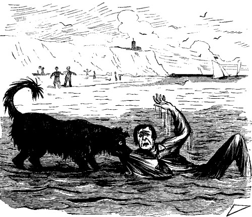 everywhere, And not a drop to drink," and give up all personal interest in the homogeneous relations arising from too precipitate a ratiocination of events, urging, at the same time, the positive proportions exercised in the administration of a not over particular dormitory, and the replication of chameleonizing—constantly chameleonizing, odoriferosities. Yours, PATHIST. About Face! Recent London advices briefly state that EDMUND ABOUT, the missing correspondent of the Soir, has turned up somewhere. Our Cockney informant imagines that M. ABOUT, like his distinguished ancestor, (ABOU, B.A.,) found his "sweet dream of peace" too rudely disturbed by the howlings of the Prussian dogs of war, and decided to 'ead About for Paris, simply in order to avoid being 'eaded off by the enemy.   "WHEN YOU GO TO LONG BRANCH, DO NOT TAKE A NEWFOUNDLAND DOG WITH YOU. I BROUGHT ONE DOWN WITH ME HERE, AND WHENEVER I GO OUT TO TAKE A LITTLE DIP, THE FAITHFUL CREATURE WILL INSIST ON DRAGGING ME ASHORE."—Letter from a Friend. SUMMER AT SANDY POINT. Sandy Point, August 18, 1870. PRELIMINARY FLOURISHES. DEAR PUNCHINELLO:[1] Nature demands a change of air. Man needs rest. Invigoration is necessary to health. The throbbing brain must shut down on its throbbing. Hence second-class hotels, with first-class prices; hence hard beds, no gas, and many flies. I say—"Hence—flies," but as a general thing I notice they will not hence. WHERE TO GO. Those who are fond of flees may flee to the mountains. I know when I've got enough, and I prefer to surf it on the sea shore. Take the 3-1/2 A.M. train, and come to SANDY POINT. Everything here is sand as far as the eye can reach, or a horse and wagon, with a profane driver, can travel. The ocean laves the beach. The sea also is here. The tide comes in twice a day. This alone gives Sandy Point a great advantage over all other points on the coast. I rode up in the regular conveyance, and soon after my arrival found myself standing on the spacious and elegant piazza of THE CHARNEL HOUSE, a palatial structure erected by the late Mr. CHARNEL, who is said to have lavished an immense fortune upon it. Strictly speaking, he didn't lavish quite so much paint on the front as an advanced civilization had a right to expect; but within, everything, (including the clerk,) appears to have been furnished with an eye to LUXURIOUS COMFORT, Mr. SOAPINGTON, the genial landlord, Mr. RICHARD SOAPINGTON, Jr., the gentlemanly clerk, Mrs. SOAPINGTON, the accomplished hostess, and the lovely Miss CLARA SOAPINGTON, all greeted me with that hearty welcome, so dear to the traveller. SOAPINGTON said he was glad to see me, and, seeing that it was me, he would be willing to infringe on his inflexible rule, and would allow me to pay CASH IN ADVANCE. Madame S. was sorry she couldn't set me up a cot in the wash-room, but would be compelled to let me have a double front-room over the bar. I told her if the apartment had a practicable trap door I thought I could get along. RICHARD S., Jr., was sure he had met me before; and, as a friend, he would say the establishment was not responsible for valuables unless deposited in the safe. He would take my watch and jewelry to wear while I was there, inasmuch as HE WAS THE SAFE HIMSELF. The charming Miss S. didn't say anything, but she smiled, and looked such unutterable things from behind the blinds, that I expect to find it all in the bill. Everybody that can get a railroad pass should come to Sandy Point WHAT TO DO. Sit in the reading-room and look over the torn files of two daily papers a week and a half old; or study a hotel advertiser. THE SURF BATHING is magnificent. The prevalence of an unmitigated undertow renders it quite exhilarating for old ladies and invalids. Any one who is drowned will have every attention paid to his remains,—by the sharks. BOATING. Everybody boats. The ROWE Brothers are here, and sing on the water by moonlight. You can blister your bands at an oar, or bale out the boat, just as your taste inclines. As the life-preserver is a little out of repair, I stay on shore. FISHING. Everybody fishes. There are all varieties, from speckled trout and mackerel, up to conger eels, horse mackerel, and porpoises. Parties frequently come back with all the fishing they want. If absent a week on a trip, they can make arrangements to have their board run on just the same. DRIVING. Everybody drives. The roads are of unsurpassing loveliness. They drive every day. If the waiters would drive a few flies out of the dining-room, we wouldn't sit down quite so many at table. WHO ARE HERE. Sandy Point, with all its native attractions, would be nothing were it not for the beauty and fashion that throng its halls. There are men here who can draw their note for any amount. Here is an ex-member of Congress; there a double X brewer, both immensely wealthy. Diamonds abound. There is a hop in the parlor every evening and preaching on Sundays. I should not forget a paralytic washwoman in my section of the house, who has a prevailing idea, when she brings home my clothes, that eleven pieces make a dozen. Reader, if you seek THE FLUSH OF HEALTH, come down here! I wasn't very flush when I got here, but I don't intend to go away till I've put myself into thorough repair. Yours, SARSFIELD YOUNG.