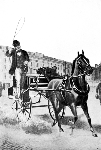Reeds om de stad heen was het rookerig en somber, niet het minst in Hedwig's oogen, thans verwend aan de heldere, frissche tinten en geuren van het bekoorlijke Devonshire en terwijl zij het perron overliep, stak zij even haar gezicht in den ruiker grassen en varens, die zij niet in den koffer had willen pakken,-uit vrees dat zij zouden bederven,-maar in de hand met zich meedroeg. Toen zij het met den koetsier van een vigilante eens was geworden over den prijs, zette zij haar taschje even op den grond en legde er de varens bovenop, om een oogenblik al haar aandacht te schenken aan haar koffer, die met horten en stooten op het imperiaal werd gezet. Hoe groot was echter haar ontsteltenis en-ook haar lachlust!---toen zij, zich omkeerend om haar taschje en bouquet weer op te nemen, ontdekte dat het paard bezig was met zichtbaar welgevallen de nog sappige varens en grassen op te peuzelen, waarvan thans nog maar enkele, half afgebeten exemplaren over waren! Die liet Hedwig liggen; het was te treurig om zulke overblijfselen van vervallen grootheid als herinnering aan den onvergetelijken avond op Luscombe Castle te bewaren! Hoofdschuddend ging zij de vigilante in.