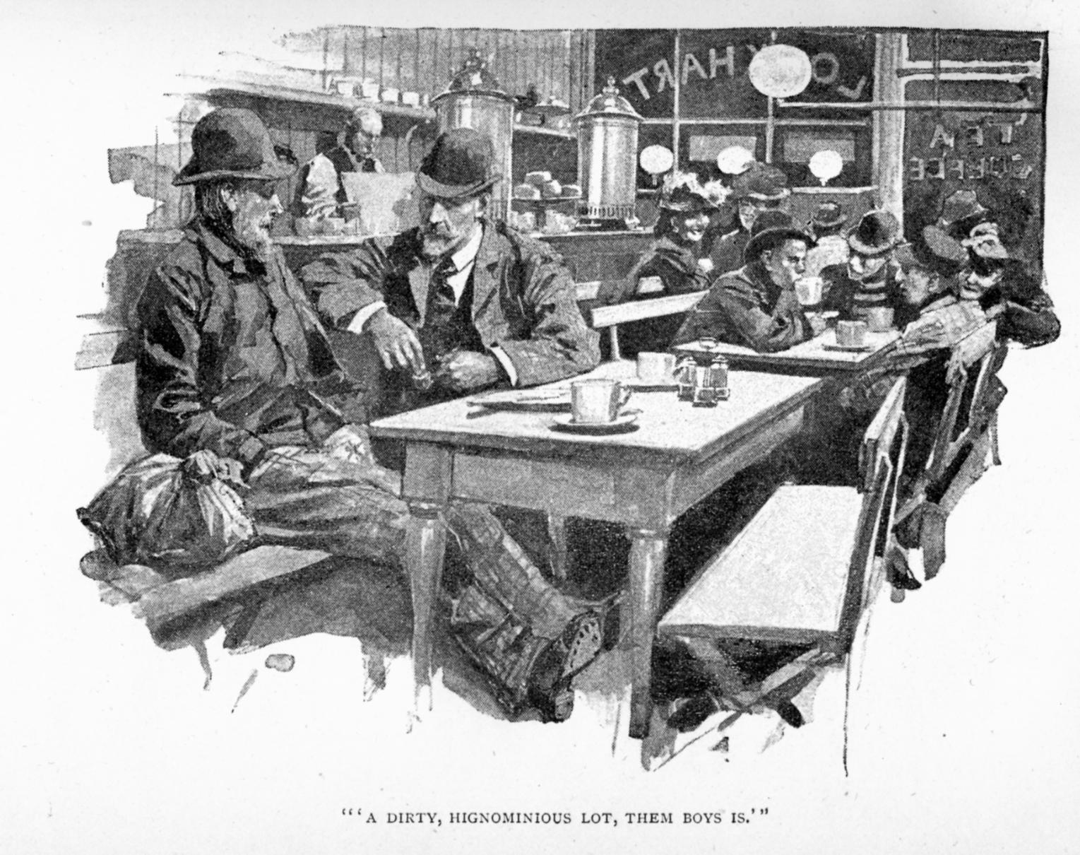 'Yes; see I made no bloomin' error when I said you was a man of eddication. A literary gent, I should think. In the reporting line, most like. Down in the luck like myself. What was it—drink? Got the chuck?'