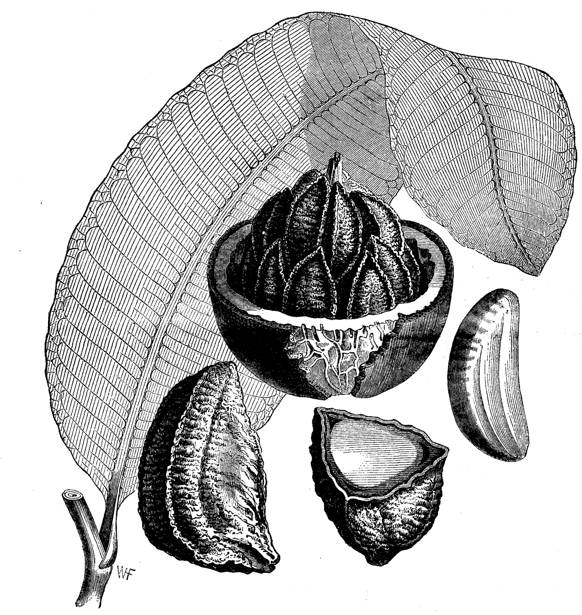 The Brazil nut tree remained for a long time unknown to European botanists, although the fruit has been from a very remote epoch consumed in large quantities in certain southern countries of the New World. The first description of the tree we owe to Humboldt and Bonpland, who established the genus and species in the botanical part of the account of their voyage. The genus is dedicated to the illustrious Berthollet.