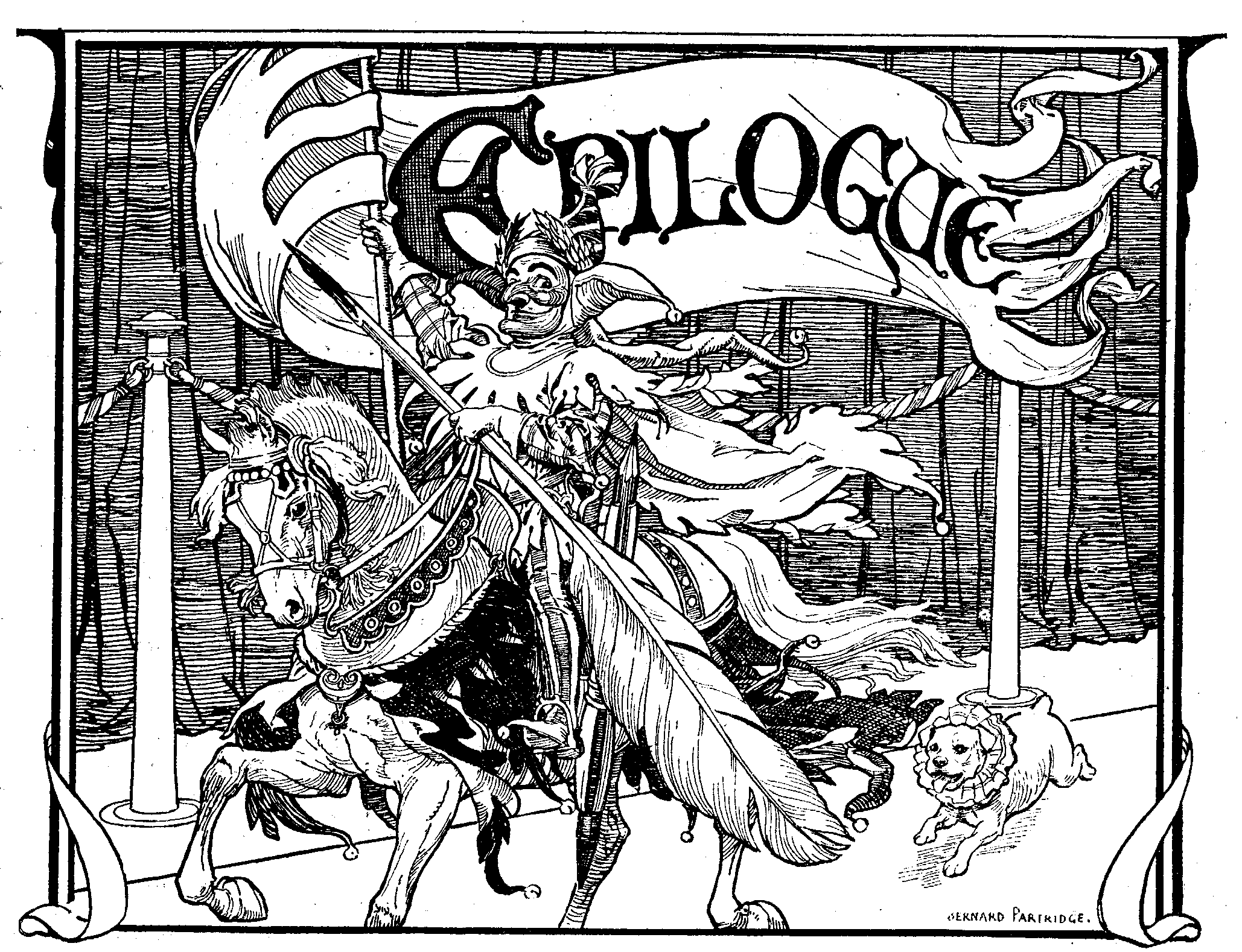 "Dear old Mr. Sententious," said she, "did you think you could take me in? I knew my Midsummer Night's Dream by heart while you were still discovering 'THE-HOG-IS-IN-THE-PIT'!" And she sang quite softly:—